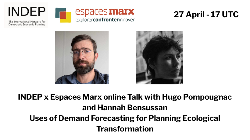 INDEP x Espaces Marx online Talk with Hugo Pompougnac and Hannah Bensussan – Uses of Demand Forecasting for Planning Ecological Transformation